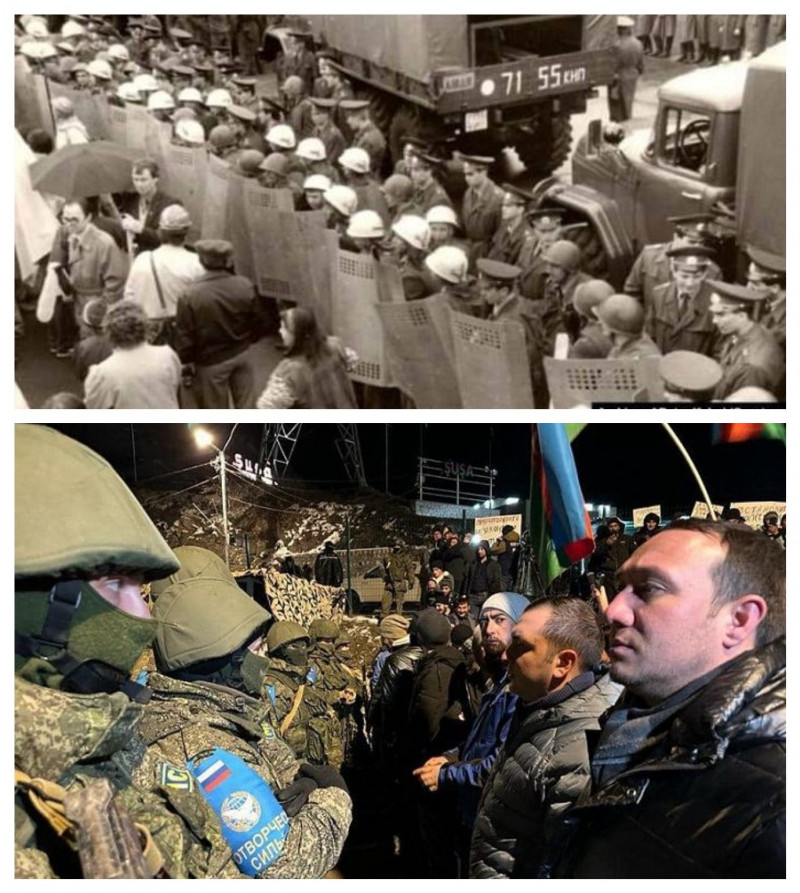 Adalet.az xəbər verir ki, Rusiya sülhməramlılarının müvəqqəti yerləşdirildiyi Azərbaycan ərazilərində ermənilərin qanunsuz fəaliyyətləri ilə bağlı monitorinq keçirmək üçün gedən ekofəalların və QHT nümayəndələrinin Şuşa-Xankəndi yolunda etiraz aksiyası ilə birgə 32 il əvvəl azərbaycanlıların rus ordusu ilə mübarizəsinin əks olunduğu fotolar yayılıb.