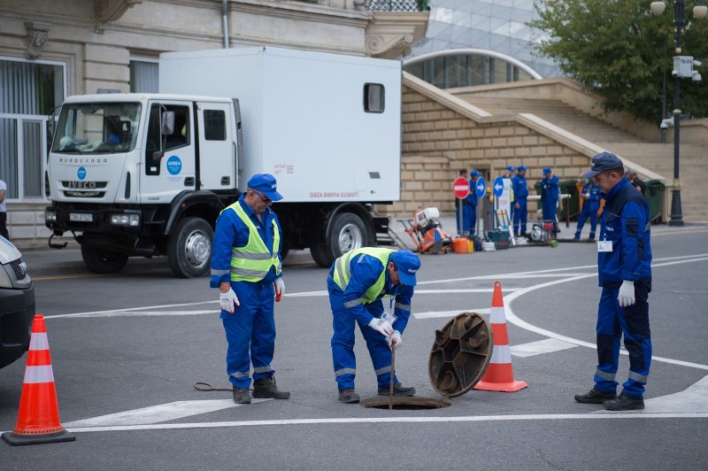 Trassa boyu ərazilərdə fasiləsiz iş rejimi ilə çalşan Səbail, Nəsimi, Yasamal, o cümlədən Bakı sukanal idarələrinin təmsilçiləri öhdələrinə düşən işi məsuliyyətlə və peşəkarcasına yerinə yetirirlər. Öncədən də əminliklə vurğulandığı kimi, təlim-məşq tədbirləri yarışların keçirildiyi ərazilərdə qüsursuz xidmətə təkan olub.