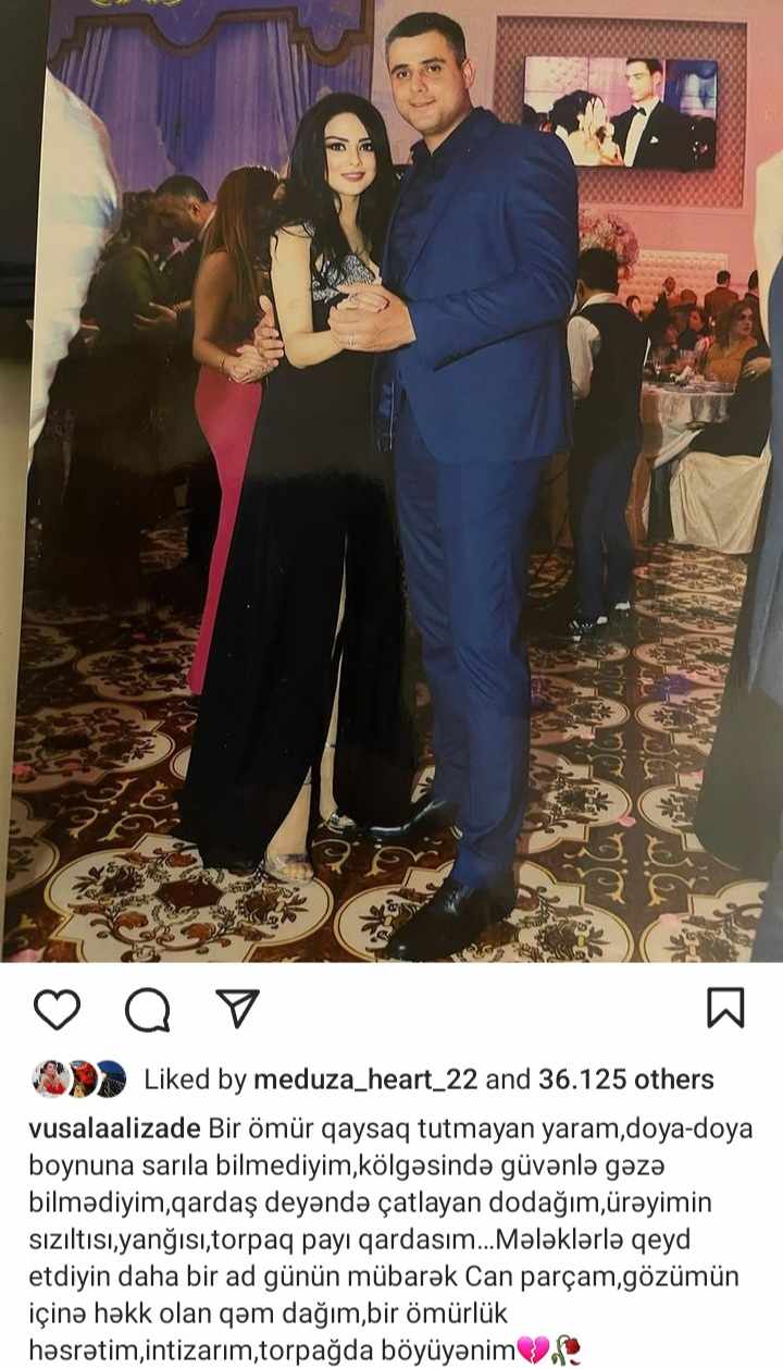 “Bir ömür qaysaq tutmayan yaram,doya-doya boynuna sarıla bilmediyim,kölgəsində güvənlə gəzə bilmədiyim,qardaş deyəndə çatlayan dodağım,ürəyimin sızıltısı,yanğısı,torpaq payı qardasım… Mələklərlə qeyd etdiyin daha bir ad günün mübarək. Can parçam,gözümün içinə həkk olan qəm dağım,bir ömürlük həsrətim,intizarım,torpağda böyüyənim.”