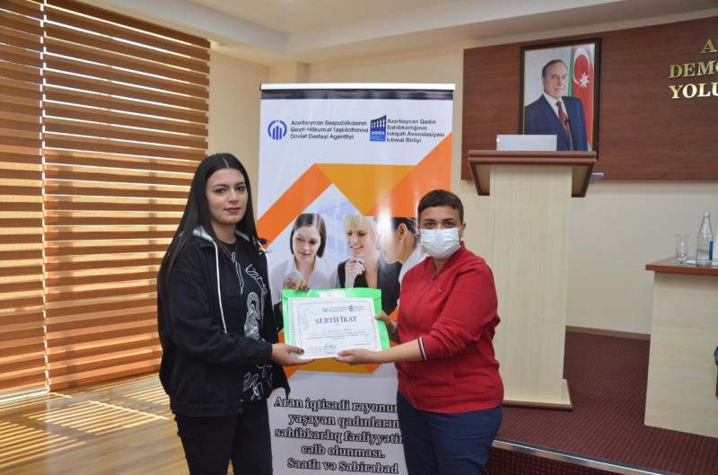 Layihə çərçivəsində aparılan sorğu nəticələri göstərir ki, maliyyə və hesabatlılıq sisteminin qurulması, biznes planların hazırlanması, investisiya qoyuluşu, marketinq və digər istiqamətlərdə məsləhət xidmətlərinin göstərilməsi və maarifləndirmə işlərinin aparılması regionda yaşayan qadın sahibkarlar üçün ən vacib məsələdir. Təlimlərdə Saatlı və Sabirabad rayonlarında yaşayan 100 nəfər evdəməşğulluq fəaliyyəti olan qadın iştirak edib. Təlimin sonunda sahibkarlıq fəaliyyətində fəallığı ilə seçilən 28 nəfər qadına müxtəlif peşə avadanlıqları hədiyyə olunub.