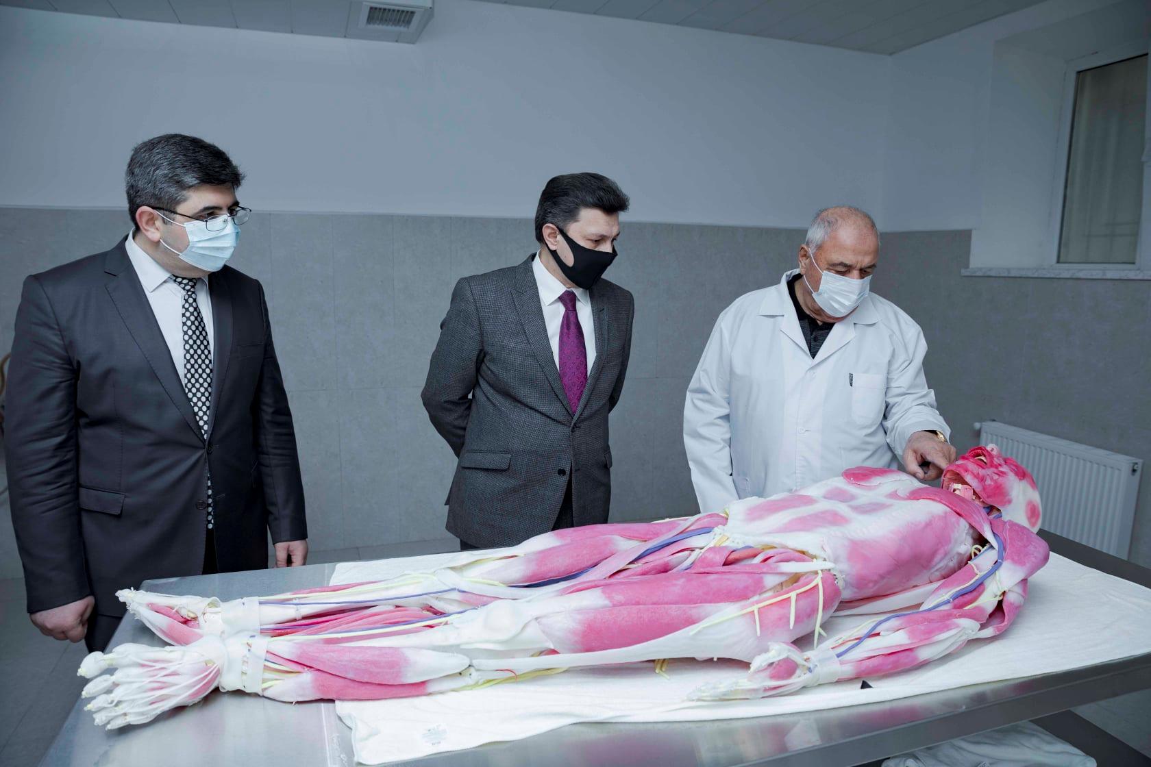 Azərbaycan Tibb Universitetinin rektoru, professor Gəray Gəraybəyli ATU-nun İnsan anatomiyası və tibbi terminologiya kafedrasında yeni anatomik mulyajlara baxış keçirib. ABŞ-ın SynDaver şirkətinin istehsal etdiyi bu sintetik “bədən”dəki orqanlar canlı insanın əzələ, sümük-qığırdaq, damar-sinir elementlərinə maksimal dərəcədə uyğundur. Onların ölçüləri və xarici görünüşü insan orqanları ilə eynidir. Sintetik meyit mulyajından insan anatomiyası fənninin tədrisi zamanı əksər bölmələrin izahında istifadə etmək olar.