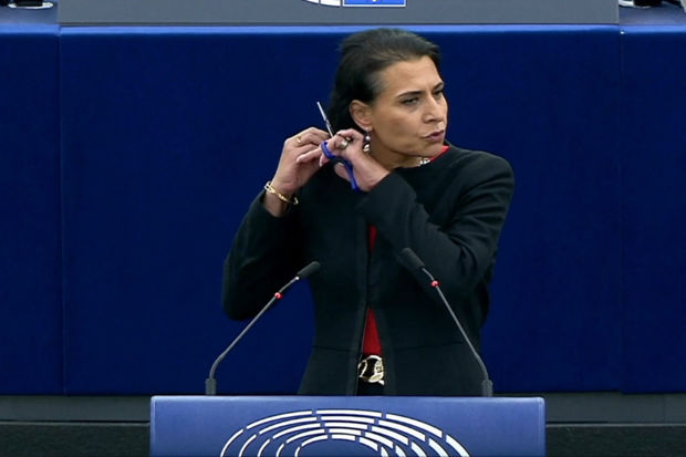 Avropa Parlamentinin deputatı tribunada saçını kəsdi - VİDEO