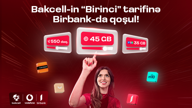 Eyni zamanda, müştərilər “Birbank” kartları ilə əməliyyatlar və “m10”la QR ödənişlər zamanı əlavə keşbek qazanacaqlar. “Birinci” tarifinin başlanğıc qiyməti 6.9 AZN-dir.