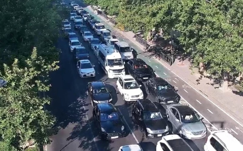 4. Tbilisi prospekti, "20 Yanvar" metro stansiyasından mərkəz istiqamətində sıxlıq müşahidə olunur.
