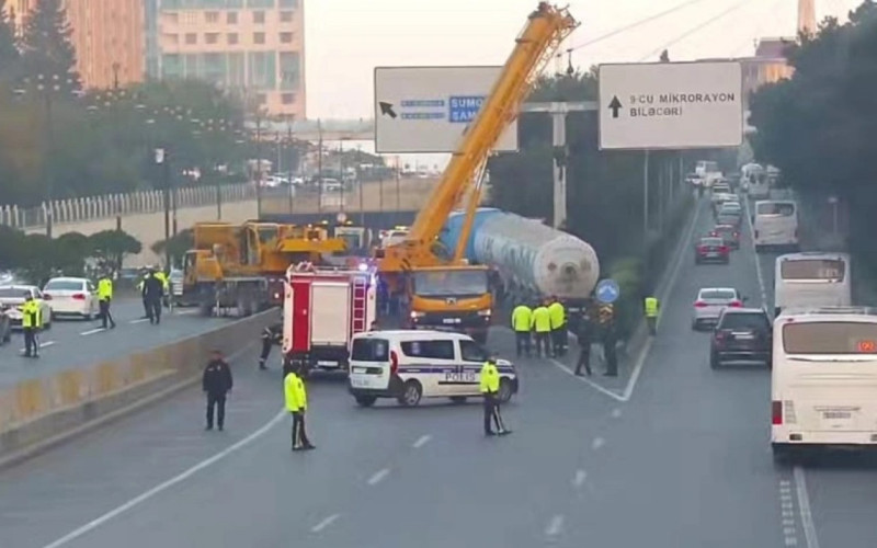 Bakıda sıxılmış qaz daşıyan yük avtomobili qəza törətdi - VİDEO + YENİLƏNİB