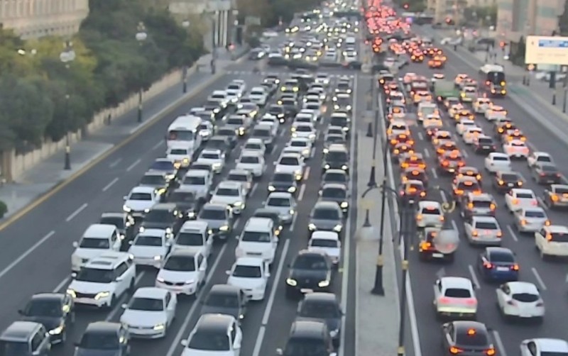 Bakının bir sıra yollarında nəqliyyatın sıxlığı müşahidə olunur.