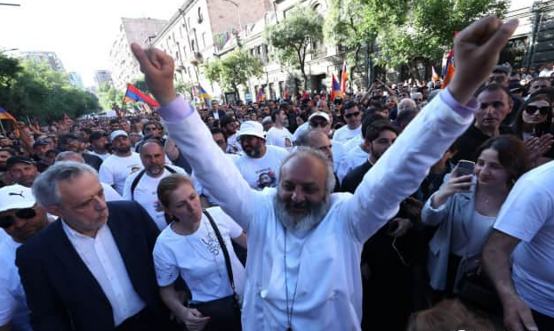 Adalet.az xəbər verir ki, bunun etirazçı, antipaşinyançı arxiyepiskop Baqrat Qalstanyan u Müqəddəs Anna kilsəsinin həyətində deyib: