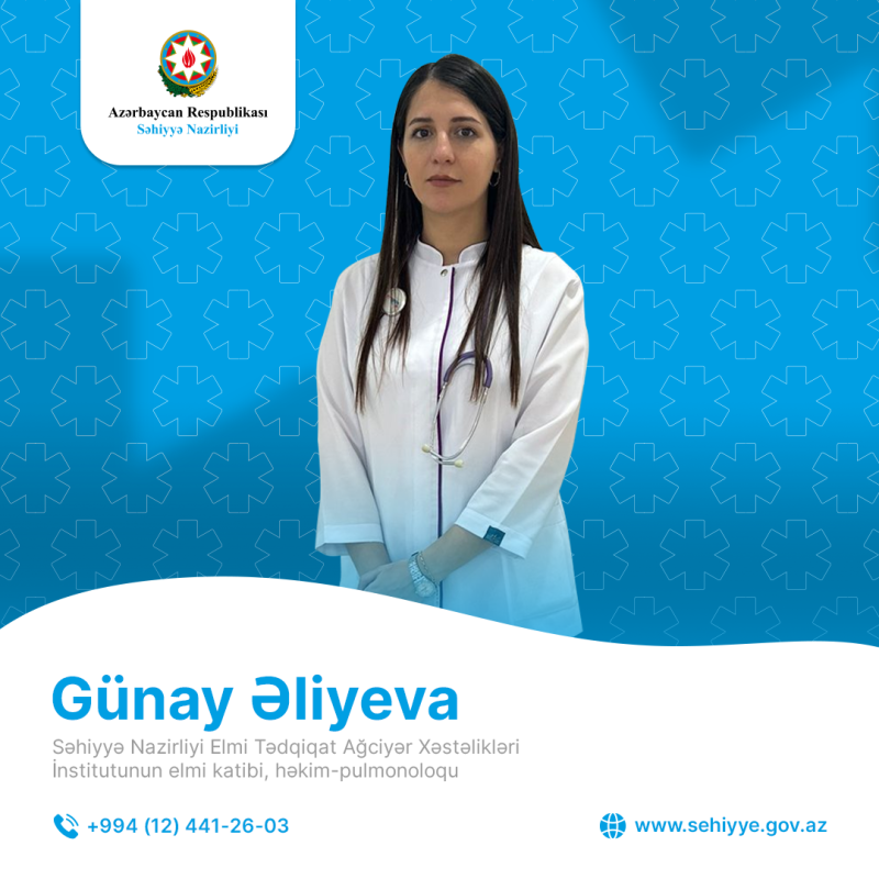 Səhiyyə Nazirliyi Elmi-Tədqiqat Ağciyər Xəstəlikləri İnstitutunun həkim-pulmonoloqu Günay Əliyeva nazirliyin saytına müsahibə verib.