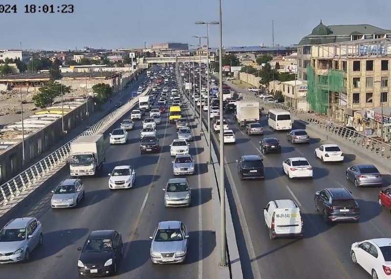 Bakının bir sıra yollarında nəqliyyatın sıxlığı yaranıb.
