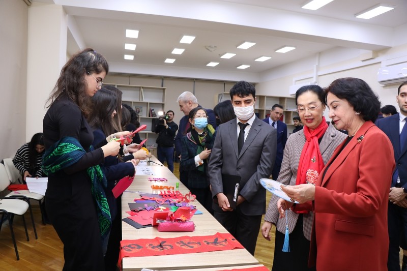 Sərgi çərçivəsində Konfutsi İnstitutunun tələbələri Çin mədəniyyətindən müxtəlif nümunələr nümayiş etdiriblər.