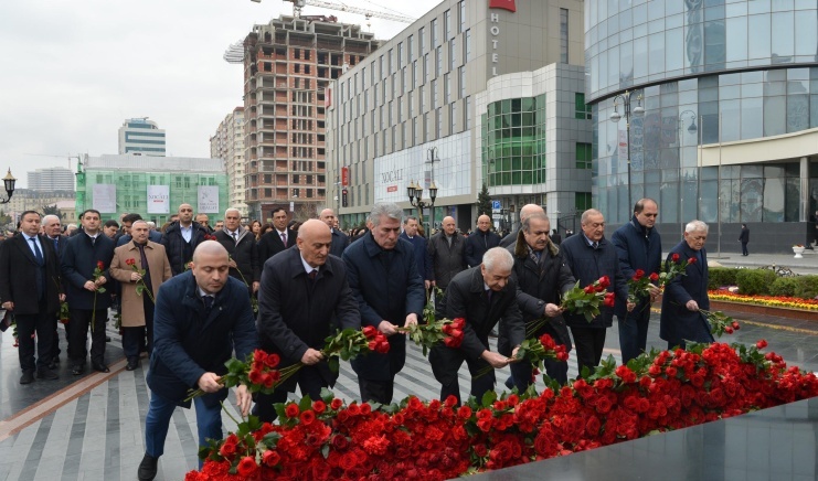 Milli Məclisin kollektivi Xocalı soyqırımı abidəsini ziyarət edib - FOTOLAR