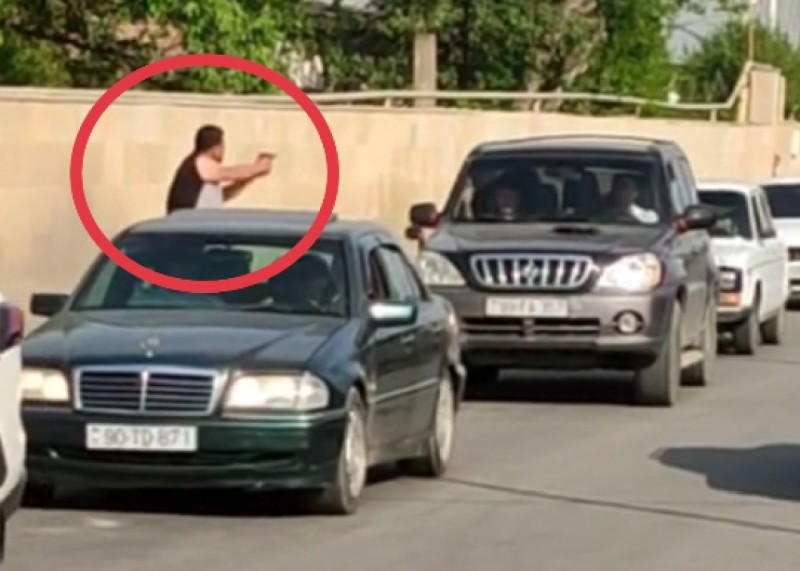 Sosial şəbəkələrdə Azərbaycanda bir nəfər şəxsin yolda hərəkətdə olan avtomobillərə silah tuşlamasını əks etdirən görüntüləri yayılıb.
