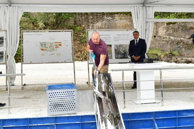 Azərbaycan Prezidenti İlham Əliyev Kəlbəcər “İstisu” mineral su zavodunun təməlini qoyub.