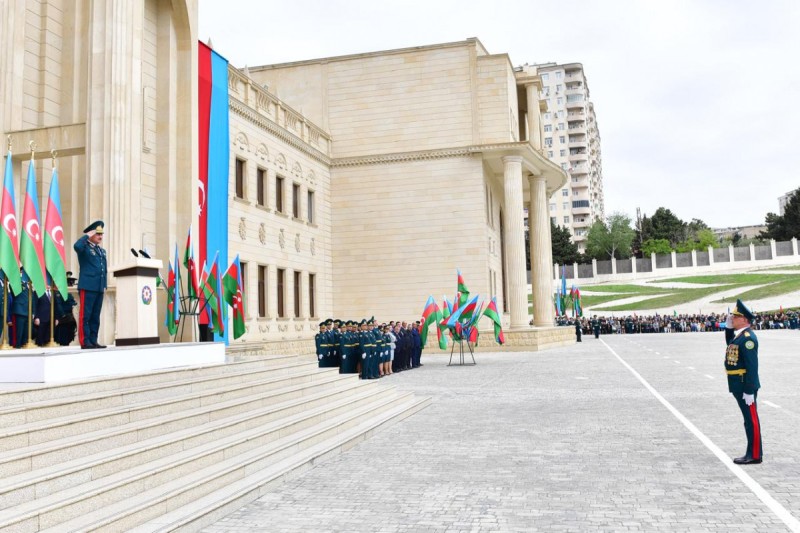 Bildirilib ki, bu gün sırada dayanan məzunlar ərazi bütövlüyümüz və suverenliyimiz tam təmin olunduqdan sonra zabit rütbələrini alan ilk Azərbaycan vətəndaşlarıdır.