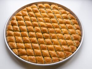 Dünyaca məşhur şərbətli desert olan paxlava, Türk mətbəxinin ayrılmaz və ən ləziz təamlarından biridir. Türkiyəyə səyahət edərkən dadmalı olduğunuz bu desert, həm də şirniyyat ehtiyacınızı ödəmək üçün əla seçimdir. Bütün Türk dünyasının ən sevimli və ləziz şirniyyatı olan paxlava xüsusi olaraq hazırlanır. Nazik yuxa qatlarının arasına fıstıq, fındıq və ya qoz kimi ləzzətli içliklər əlavə edilərək bişirilir, sonra isə üzərinə şərbət tökülür. Türk paxlavasının bu təkrarolunmaz ləzzətini dadmaq və onun Osmanlı saraylarından bugünkü süfrələrə qədər gəlib çıxan tarixini öyrənmək istəyirsinizsə, 17 Noyabr Dünya Paxlava Gününü qaçırmayın!