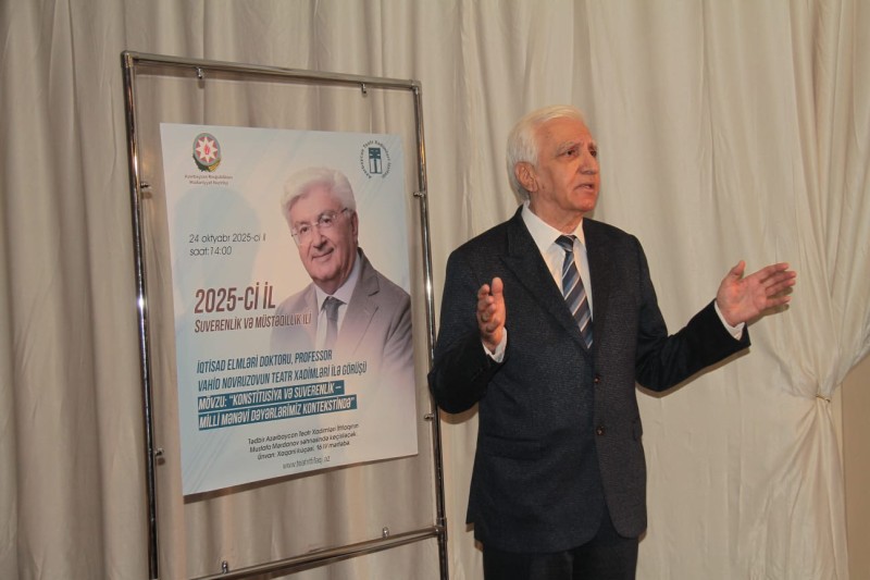 24 oktyabr 2025-ci il tarixdə Azərbaycan Respublikasının Mədəniyyət Nazirliyi və Azərbaycan Teatr Xadimləri İttifaqının təşkilatçılığı ilə “2025-ci il – Konstitusiya və Suverenlik ili” çərçivəsində İqtisad elmləri doktoru, professor, Azərbaycan Respublikası Auditorlar Palatasının sədri, Qərbi Azərbaycan İcması Nəzarət-Təftiş Komissiyasının sədri, Azərbaycan Ağsaqqallar Şurasının sədr müavini, Yeni Azərbaycan Partiyası Veteranlar Şurasının üzvü, Beynəlxalq Elmlər Akademiyasının Azərbaycan Bölməsinin həqiqi üzvü, Beynəlxalq Ekologiya Akademiyasının həqiqi üzvü, Asiya Elmlər Akademiyasının TK İdarə Heyətinin üzvü (ÇXR), Gürcüstan Mühasiblər, Auditorlar və Məsləhətçilər Cəmiyyətinin fəxri üzvü, Şöhrət ordenli Vahid Novruzovun teatr xadimləri ilə görüşü keçirilib.