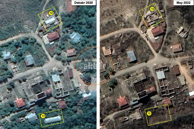 Caliber.Az Laçın rayonunun kosmosdan çəkilmiş unikal görüntülərini əldə edib. Bəzi şəkillər 2020-ci ilin dekabrına aiddir. Həmin şəkillərdə binalar hələ də dağılmayıb və salamatdır. 2022-ci ilin may ayına aid digər şəkillərdə isə eyni ərazidir, orada ermənilərin vandalizm və talan izləri aydın görünür: Eyni evlər ya dağıdılıb, ya da onlardan ancaq damı olmayan divarlar qalıb, meşələr yandırılıb, infrastruktur obyektləri məhv edilib.