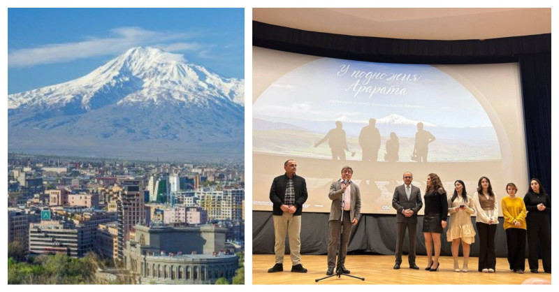 Adalet.az xəbər verir ki, Erməni-Rusiya Universitetində erməni jurnalist və rejissor Aşot Jazoyanın “Ararat dağının yamaclarında” sənədli filminin premyerası olub.