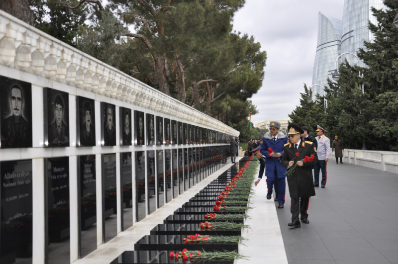 Sonra Şəhidlər xiyabanı ziyarət edilib, Azərbaycanın müstəqilliyi və ərazi bütövlüyü uğrunda canlarından keçmiş qəhrəman Vətən övladlarının məzarları üzərinə gül dəstələri düzülüb, “Əbədi məşəl” abidəsi önünə əklil qoyulub.