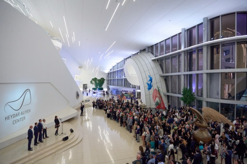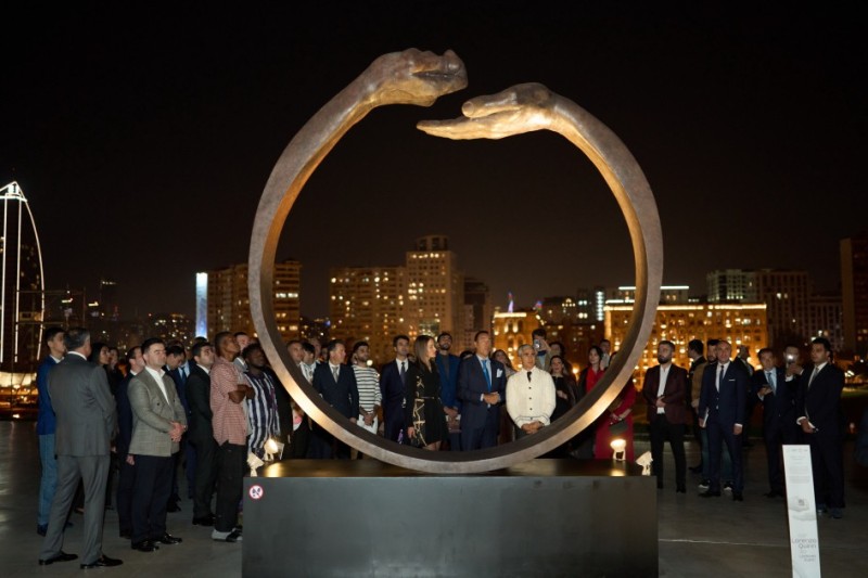 Daha sonra qonaqlar Heydər Əliyev Mərkəzinin qarşısında və foyesində təqdim olunan sərgidə möhtəşəm heykəltaraşlıq nümunələrinə baxış keçiriblər.