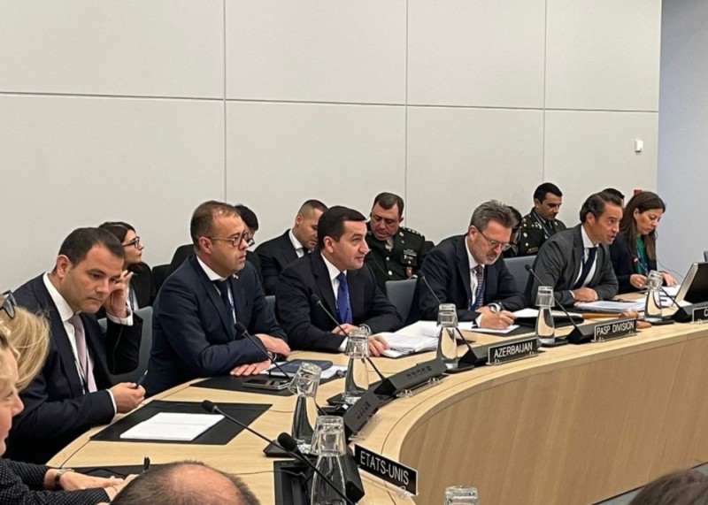 İclas zamanı Hikmət Hacıyev müttəfiqlərlə Azərbaycan-NATO tərəfdaşlığının hazırkı vəziyyəti və gələcək perspektivləri, ölkəmizin regional nəqliyyat bağlantıları və Avropanın enerji təhlükəsizliyində əhəmiyyətli rolu, COP29-a hazırlıq prosesi, Azərbaycanın iqlim və yaşıl həmrəylik gündəliyi, eyni zamanda Ermənistanla normallaşma prosesi və sülh gündəliyinin irəlilədilməsi ətrafında müzakirələr aparıb.