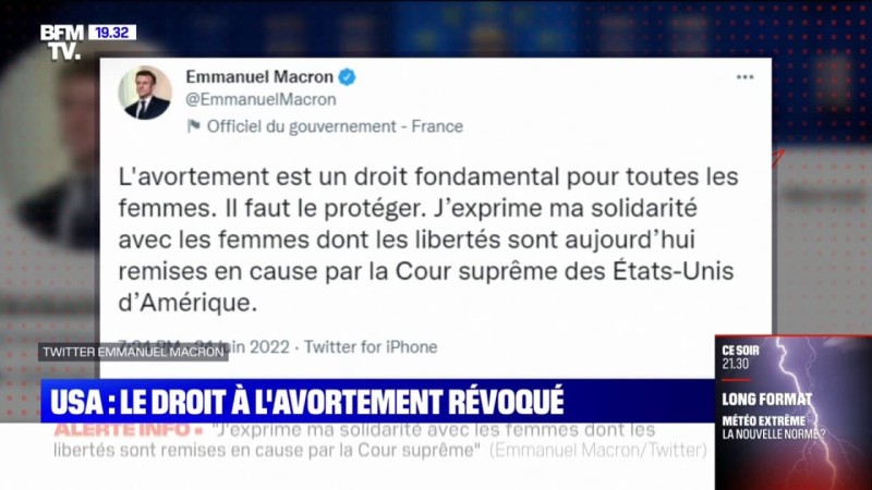 Adalet.az xəbər verir ki, Fransa Prezidenti Emmanuel Makron Tvitter səhifəsində məsələ ilə bağlı fikirlərini bildirib:“Abort bütün qadınların fundamental hüququdur və bu hüquq qorunmalıdır. ABŞ Ali Məhkəməsi tərəfindən azadlığı mübahisələndirilən qadınlarla həmrəy olduğumu bildirirəm”, - deyə o bildirib.