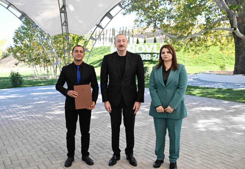 İlham Əliyev Horovlu sakinlərinə mənzillərin açarlarını təqdim etdi - FOTOLAR