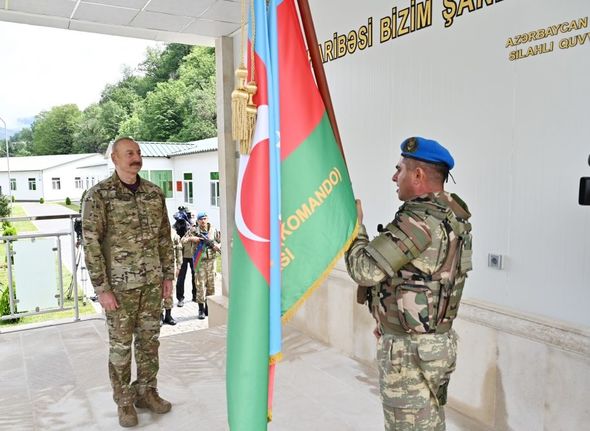 Azərbaycan Respublikasının Prezidenti, Silahlı Qüvvələrin Müzəffər Ali Baş Komandanı İlham Əliyev iyunun 26-da - Silahlı Qüvvələr Günündə Kəlbəcər rayonuna səfəri çərçivəsində komando hərbi hissəsinə döyüş bayrağının verilməsinə həsr olunmuş təntənəli mərasimdə iştirak edib.