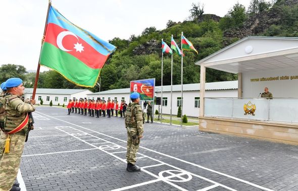 Şəxsi heyət hərbi orkestrin müşayiəti ilə Azərbaycan Respublikasının Dövlət Himnini ifa edib.