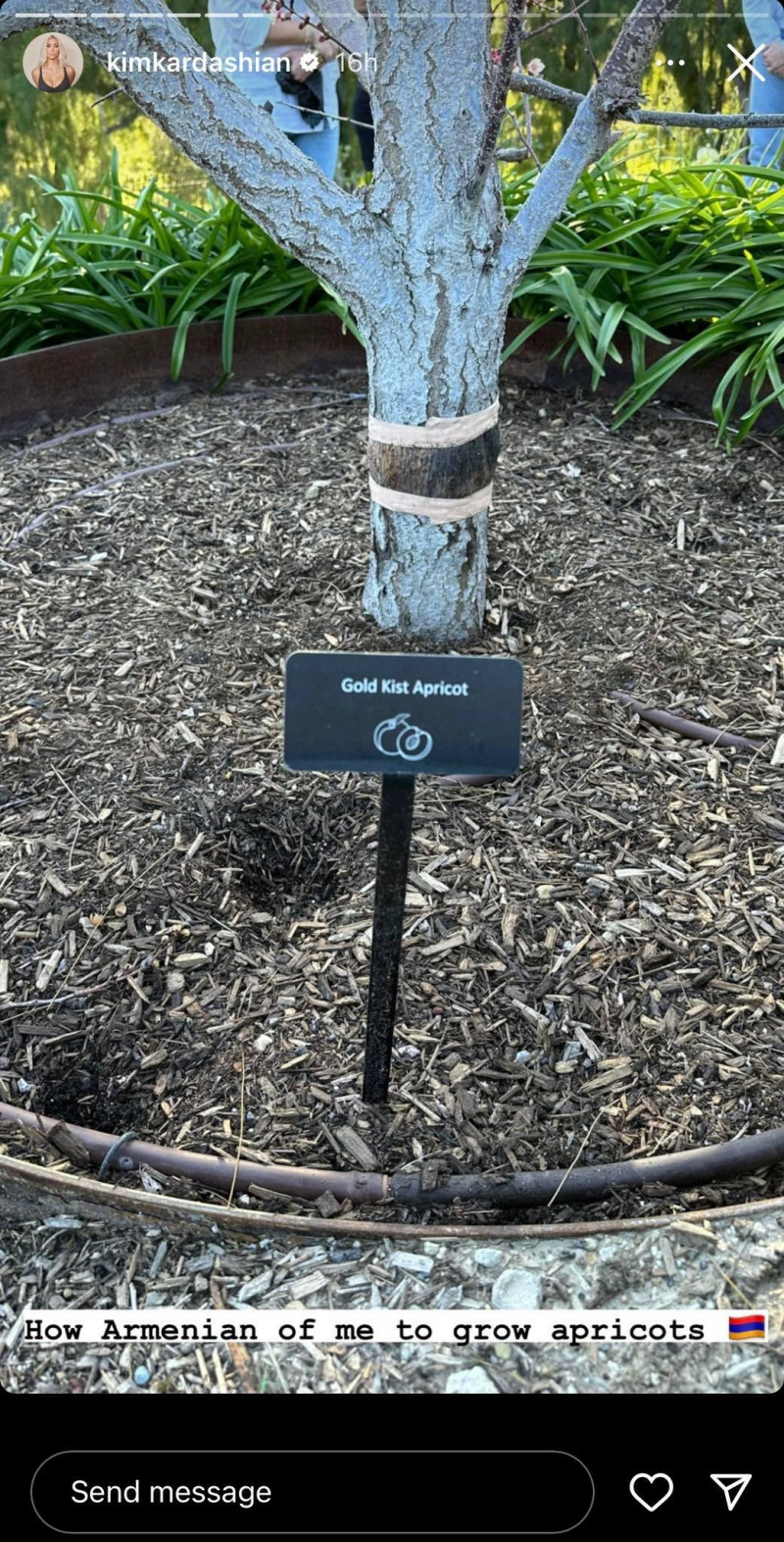 Kim ərik ağacının fotosunu dərc edərək və Ermənistan bayrağı emojisini əlavə edib: “Mənim erməni tərəfim ərikləri necə yetişdirir?” yazıb.