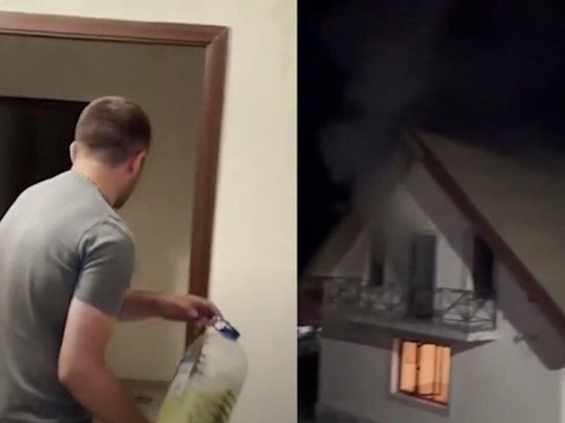 Kadrlarda erməni sakinin yaşadığı evə od vurması əks olunub.