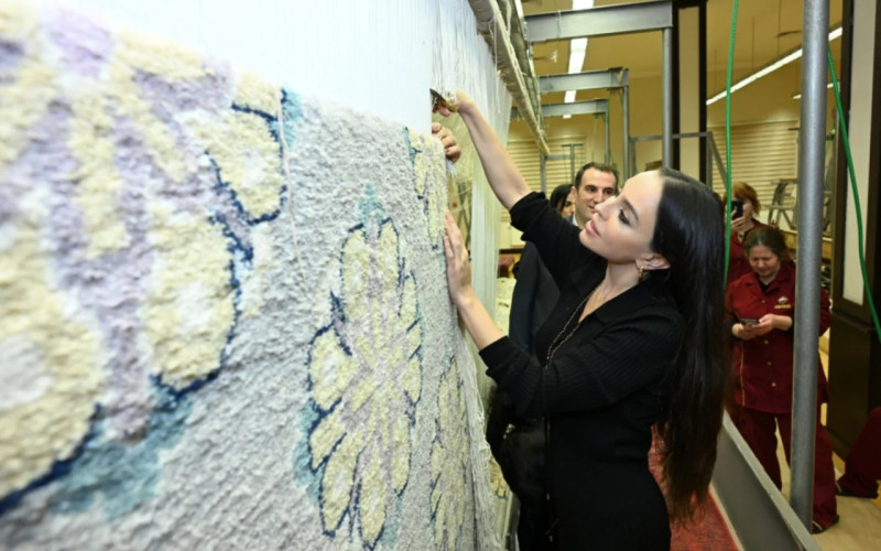 Leyla Əliyeva "Azərxalça"nın Şuşa məscidi üçün hazırladığı xalçaların kəsim mərasimində - FOTOLAR