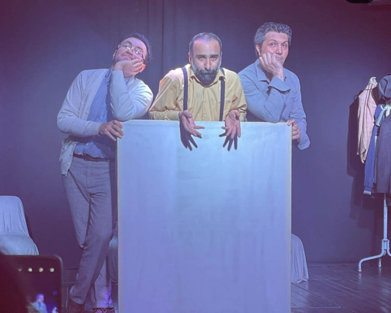 Komediya janrında qurulan tamaşada rolları Vüqar Hacıyev, Şamil İbrahimov və Ərturan Nəcəfi Göl ifa edirlər.