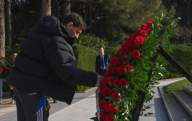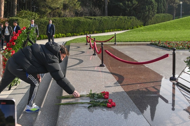 Messi və komanda yoldaşları Heydər Əliyevin məzarını ziyarət etdi - FOTOLAR