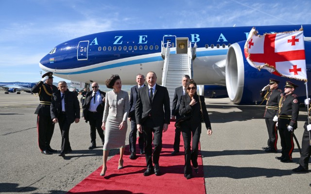 İlham Əliyevin Gürcüstanda qarşılanma mərasimindən eksklüziv kadrlar