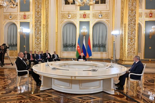 Azərbaycan, Rusiya və Ermənistan liderlərinin üçtərəfli görüşü başlayıb.
