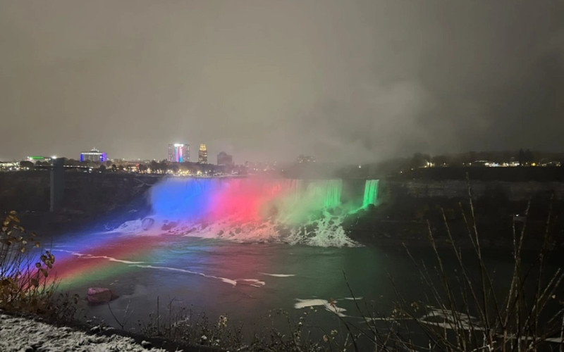Kanadanın Ontario əyalətində yerləşən Niaqara şəlaləsi Azərbaycan bayrağının rəngləri ilə işıqlandırılıb.