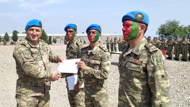 Hərbi qulluqçulara sertifikatlar təqdim olunduqdan sonra şəxsi heyət təntənəli marşla tribuna önündən keçib.