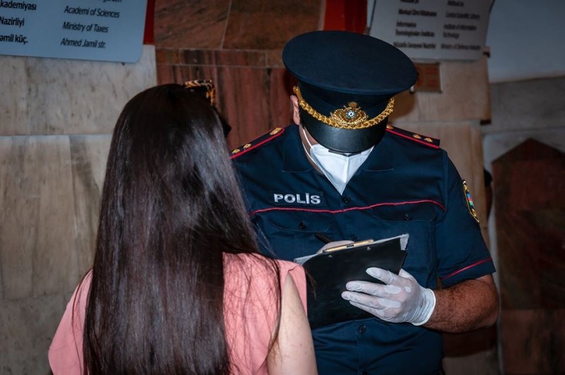 “Metropolitendə polis şöbəsinin və inzibati ərazilərdə xidmətə cəlb olunan əməkdaşlardan ibarət naryad qrupları tərəfindən tibbi maskadan düzgün istifadə etməyən, polis gördükdə dərhal “maskadan istifadə edirəm, maskam var” deyən şəxslərə koronavirus infeksiyasının fəsadları izah olunub”.