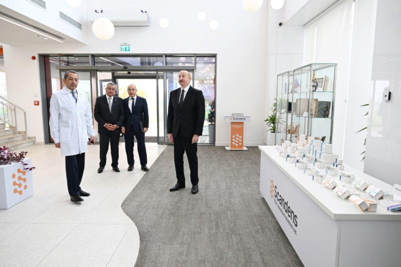 Azərbaycan Respublikasının Prezidenti İlham Əliyev Abşeron rayonunun Hökməli qəsəbəsində “Scandens Pharmaceutical Industries Ltd” MMC-nin dərman preparatları istehsalı müəssisəsinin açılışında iştirak edib.