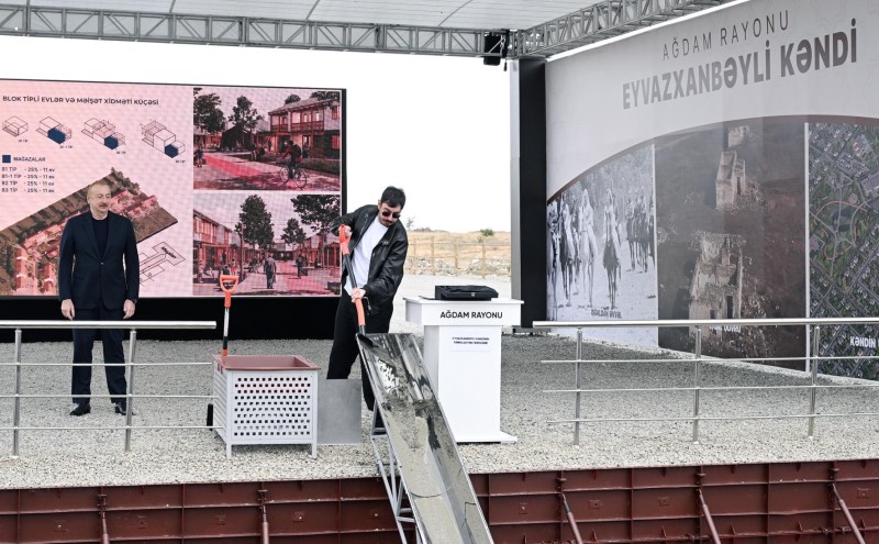 Azərbaycan Respublikasının Prezidenti İlham Əliyev və oğlu Heydər Əliyev sentyabrın 19-da Ağdam rayonunun Eyvazxanbəyli kəndinin təməlqoyma mərasimində iştirak ediblər.