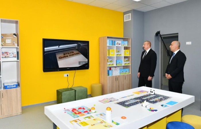 Dövlətimizin başçısı məktəbdə yaradılan şəraitlə tanış oldu.