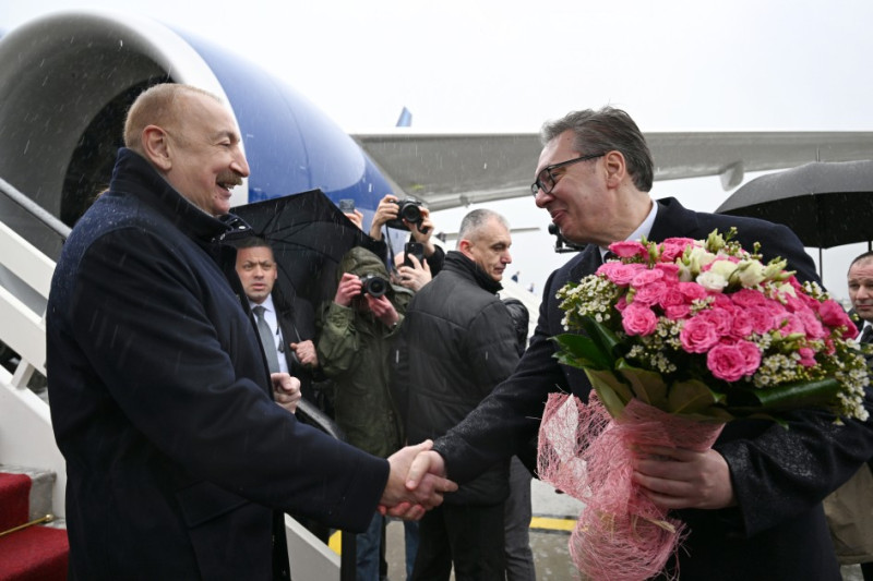 Prezident İlham Əliyevi və birinci xanım Mehriban Əliyevanı Serbiya Respublikasının Prezidenti Aleksandar Vuçiç qarşıladı.