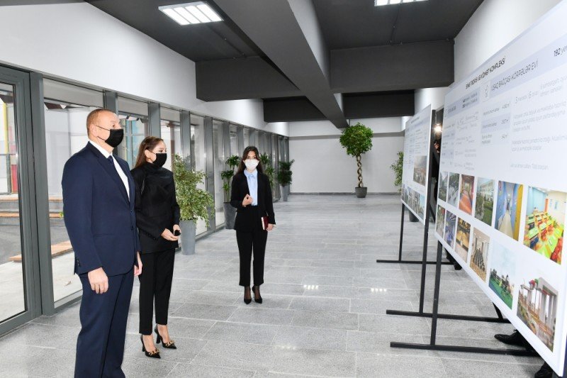 Prezident İlham Əliyev və birinci xanım Mehriban Əliyeva kompleksin ərazisində tikilmiş 292 saylı tam orta məktəbdə yaradılan şəraitlə tanış oldular.
