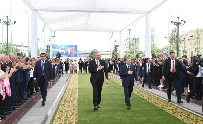 Adalet.az xəbər verir ki, Özbəkistanda dövlət səfərində olan Azərbaycan Respublikasının Prezidenti İlham Əliyev və Özbəkistan Respublikasının Prezidenti Şavkat Mirziyoyev açılış mərasimində iştirak ediblər.