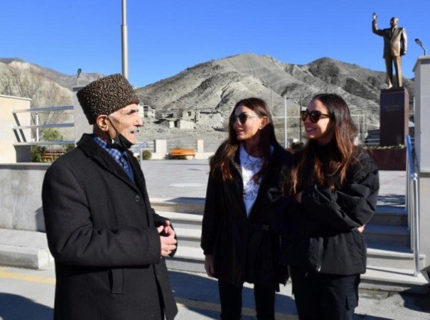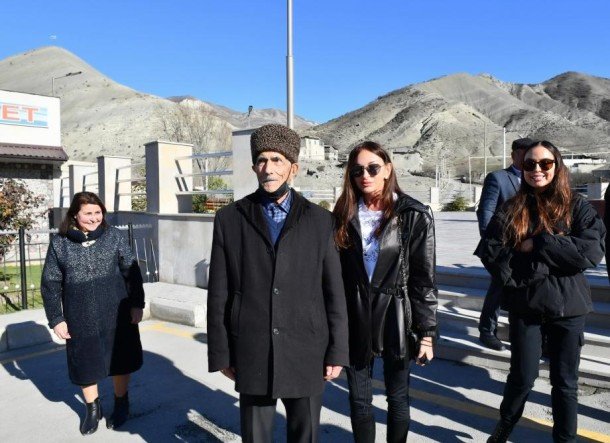 Dövlət başçısı, birinci xanım və qızları Mədəniyyət Evi ilə tanışlıqdan sonra qəsəbə sakinləri ilə görüşüblər.