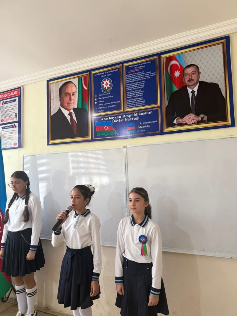 Məktəbin tədris işləri üzrə direktor müavini, təşkilati işlər üzrə direktor müavini, Məktəbin tədris işləri üzrə direktor müavini, təşkilati işlər üzrə direktor müavini, Hərbi rəhbər, Kitabxananın müdiri və Uşaq Birliyi rəhbərinin birgə hazırladığı "Müstəqilliyimizin bərpası" günü münasibətilə müəllim və şagirdlərimizin tədbiri yüksək səviyyədə qeyd olundu.