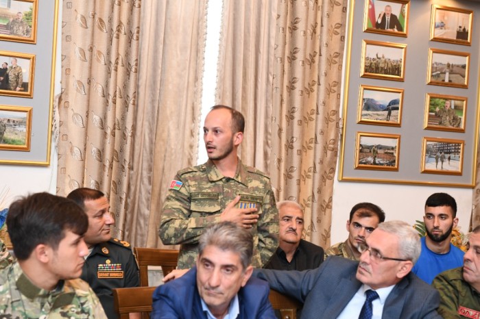 Səmimi söhbət şəraitində keçən görüşdə məcburi köçkün müharibə veteranları öz fikir və mülahizələrini bildirib, postmüharibə dövrünün xüsusiyyətlərindən, öz arzu və istəklərindən danışıblar. Onlara bildirilib ki, görüşdə qaldırılan bütün məsələlər hərtərəfli araşdırılacaq və qanunvericiliyə uyğun şəkildə həlli təmin ediləcəkdir.