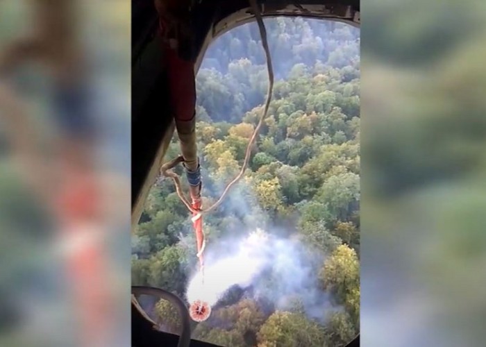 Şabranda yanğınların söndürülməsinə helikopter cəlb edilib - VİDEO