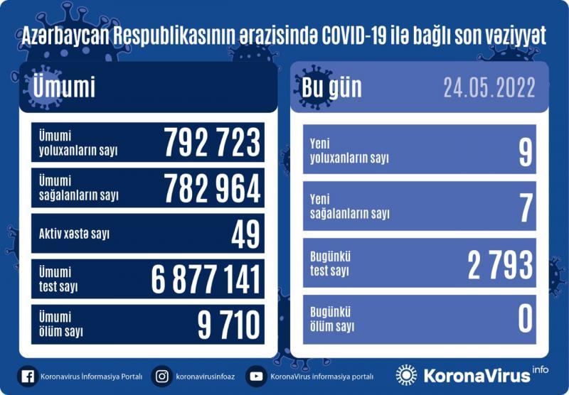 Azərbaycanda koronavirusa 9 yeni yoluxma faktı qeydə alınıb, 7 nəfər müalicə olunaraq sağalıb.